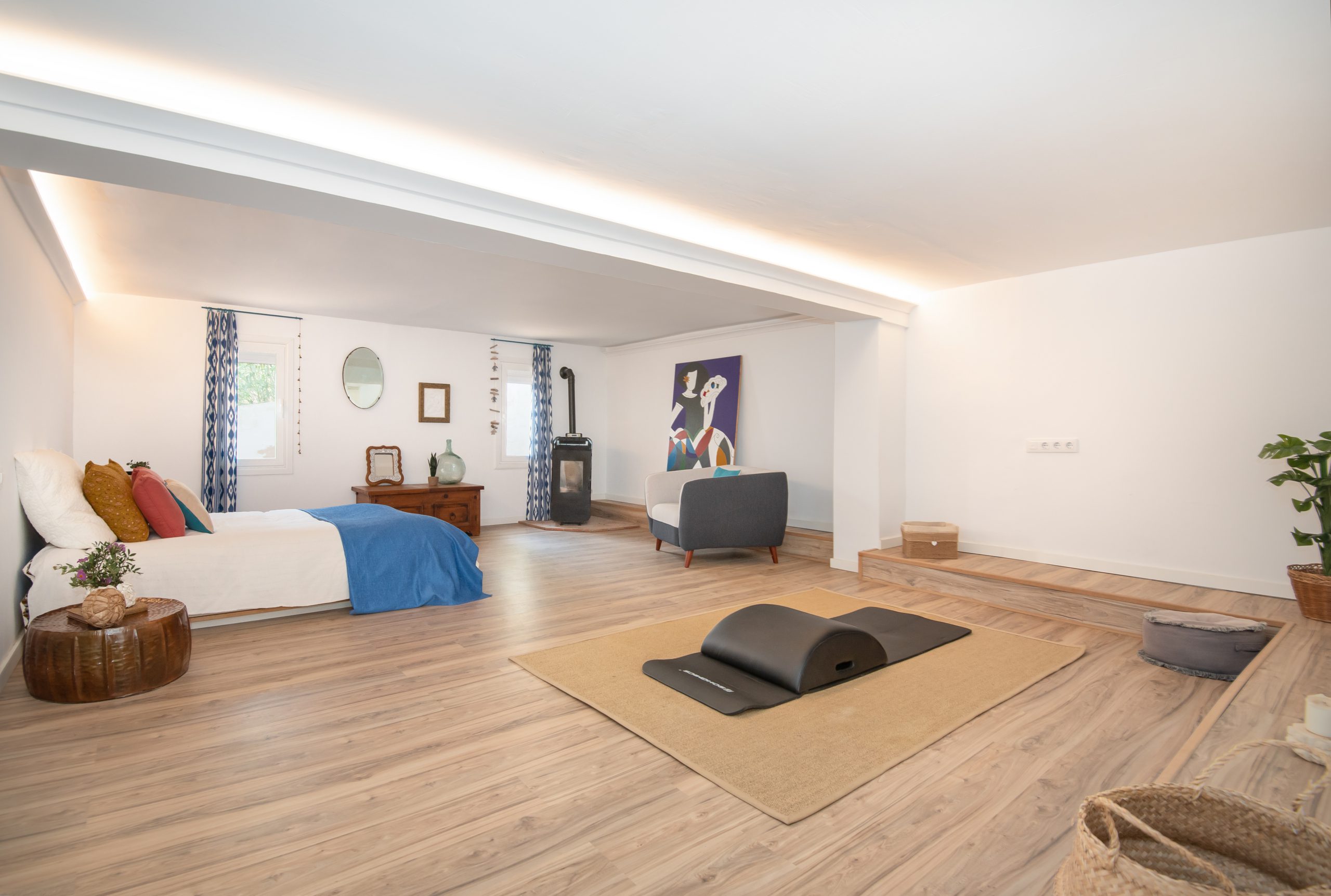 El espacio independiente, ubicado en un ala separada con entrada propia, es un valor diferencial. Equipado con cocina integrada, salón con chimenea y suite de 50m2 con baño y vestidor, funciona como apartamento vacacional, zona de invitados o incluso fuente de ingresos mediante alquiler. Su diseño autónomo permite aprovechar la licencia vacacional sin afectar la privacidad de la residencia principal, ideal para proyectos de inversión turística.