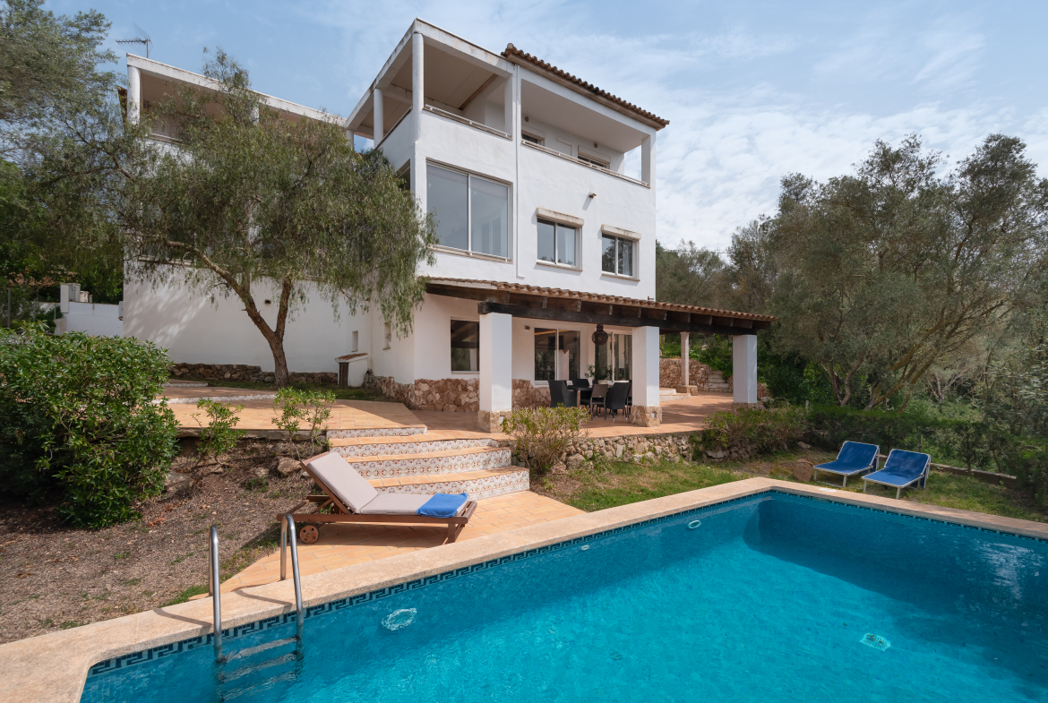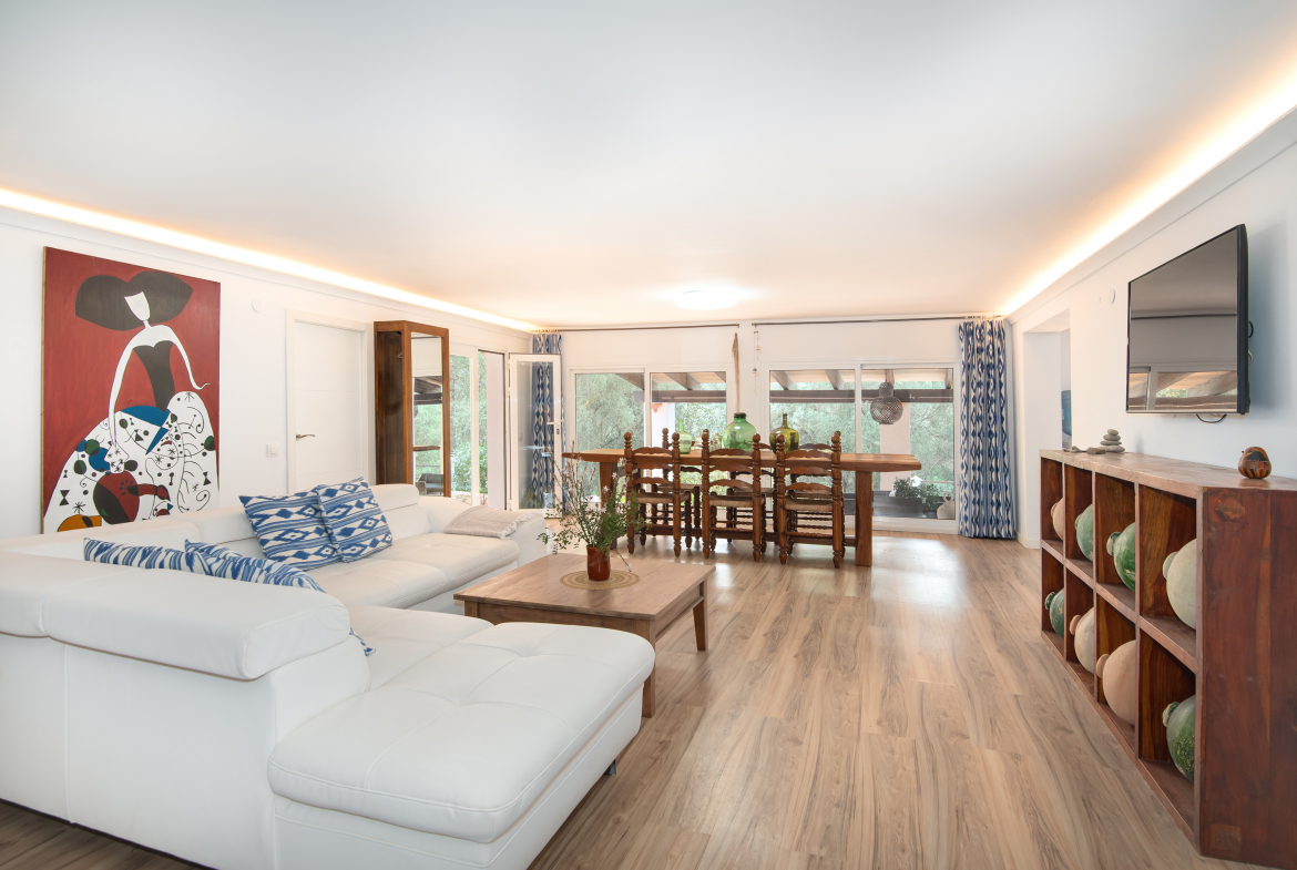 En el tranquilo enclave de S’Aranjassa, rodeada de olivares centenarios y lejos del bullicio urbano, esta impresionante villa de 450m² redefine el concepto de vida exclusiva en Mallorca. Con 5 amplias habitaciones y 5 baños completos, la propiedad fusiona el carácter rústico mallorquín con comodidades contemporáneas, destacando su licencia vacacional activa y una planta completamente independiente para maximizar su versatilidad.
