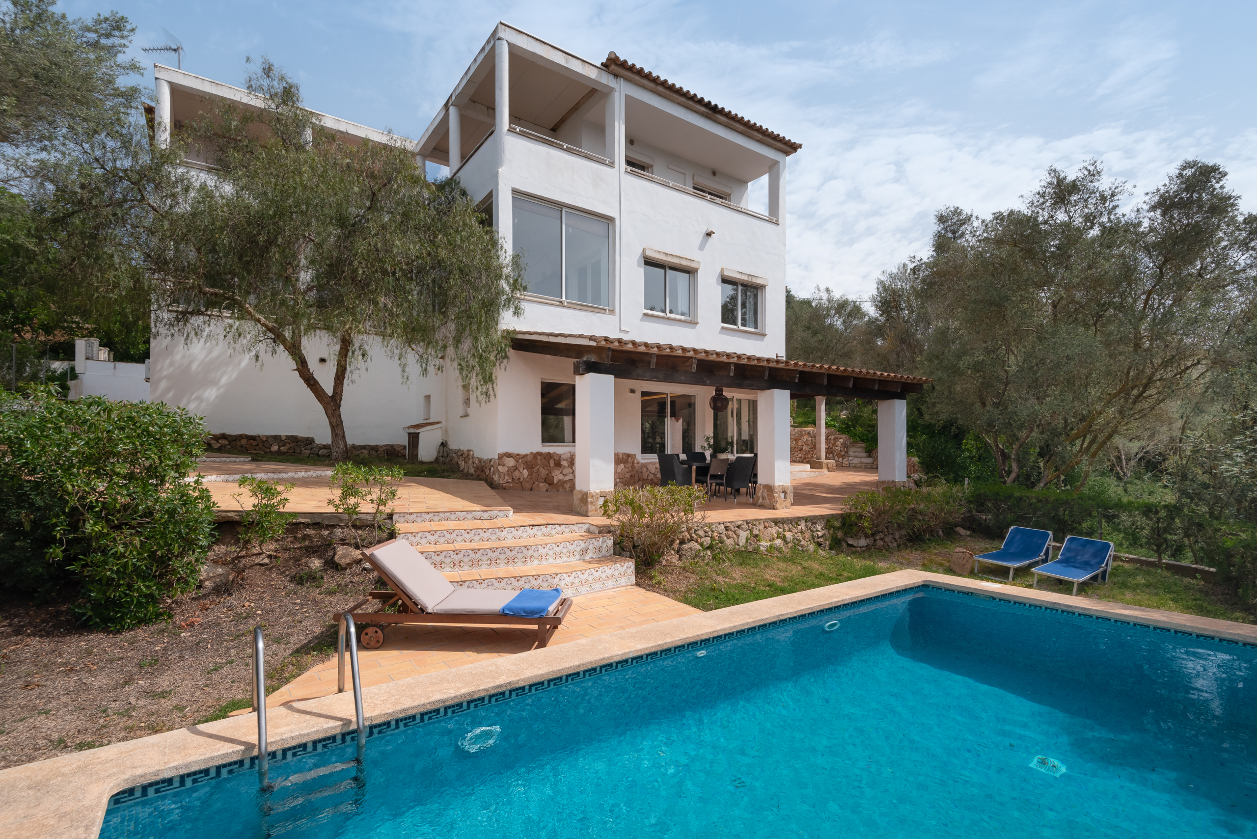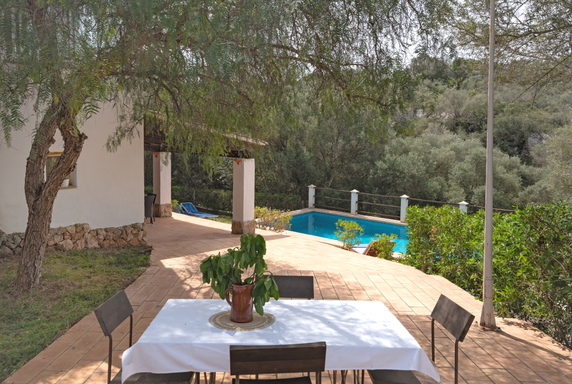 La villa se erige en una parcela vallada de 7.500 m², donde la vegetación mediterránea y los olivares aseguran intimidad absoluta. Cada rincón exterior está diseñado para el disfrute sin comprometer la discreción: una bonita piscina con vistas al paisaje rural, una zona de barbacoa cubierta y amplias terrazas empedradas. Los jardines, de bajo mantenimiento y con especies autóctonas, enmarcan un entorno sereno ideal para desconectar.