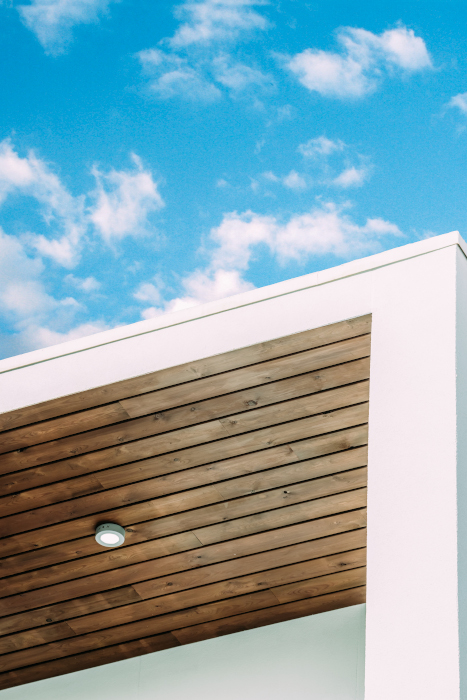 Vivienda de 140m2 en dos plantas. Acabada exteriormente en Sate Blanco y madera.