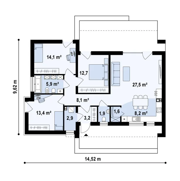 Casa moderna de una planta con interior funcional y amplia terraza ERES-53